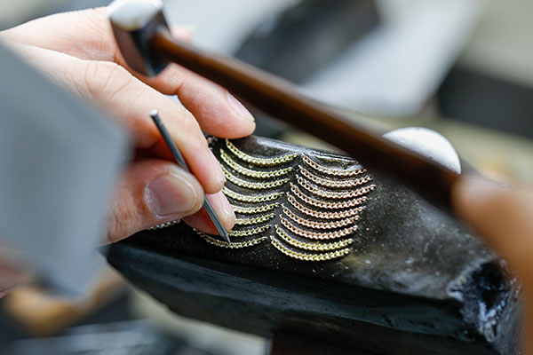 conohanaの地元山梨には高度な技術を持つ素晴らしい職人さんがいます。研磨や彫刻、それぞれの職人さんの特色を生かした特別なジュエリーをconohanaらしく形に仕上げたジュエリーです。